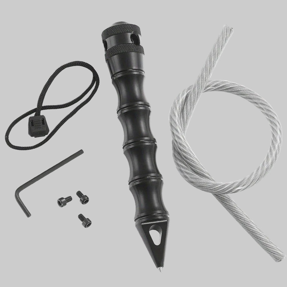 This tactical EDC whip-style tool is designed for emergency and outdoor utility use.