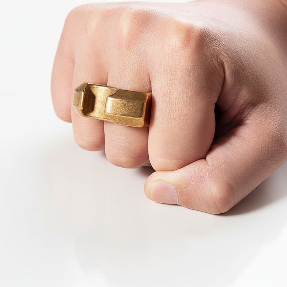 This H59 solid brass EDC tool features a compact design with a rugged stonewash wasteland style finish.